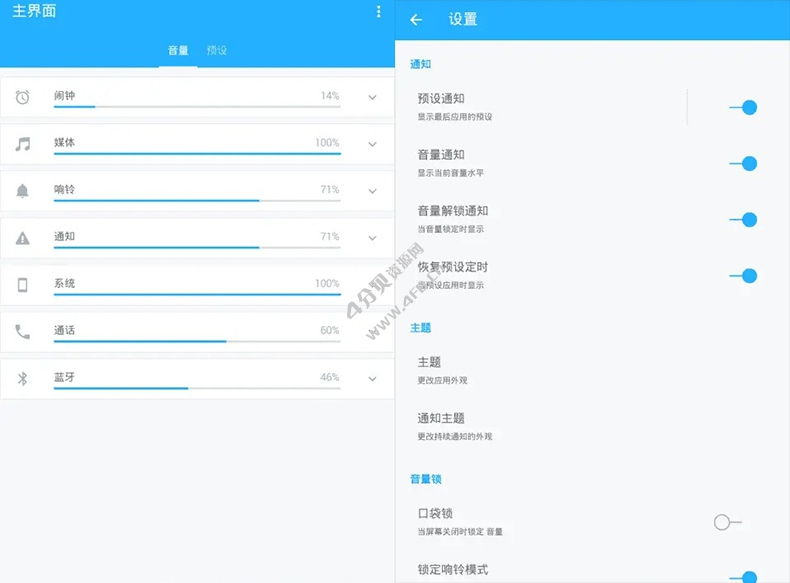 - 丰富交互式小部件:提供多款主屏幕小部件,包括预设快速应用、音量锁定器、振动 / 铃声模式切换、多功能音量控制仪表板等,无需打开 APP 即可快速操作。