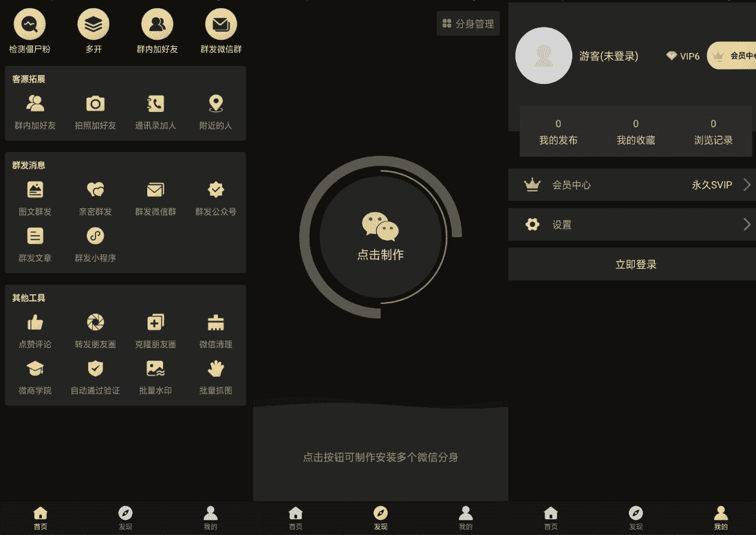 - 微信辅助:检测僵尸粉、支持多开、群内加好友、群发微信群消息。