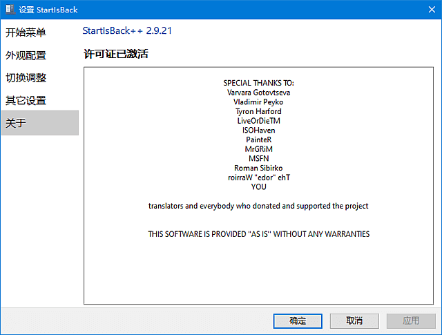 StartIsBack++ v2.9.21 for Win10 绿色版