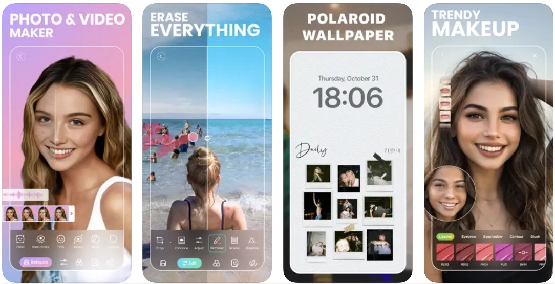 - 视频美颜编辑不仅支持照片修图,还能对短视频进行实时美颜处理,磨皮、瘦脸、滤镜等效果同步应用,无需额外剪辑软件,直接导出美化后的视频,适合制作朋友圈、短视频平台的动态内容。