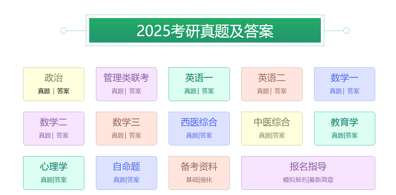 整合2015-2025 年考研全科目真题及权威答案解析,涵盖公共课(政治、英语一 / 二、数学一 / 二 / 三、管理类联考)与热门专业课(西医综合、中医综合、教育学、心理学等),所有资源均来自官方教育平台及高校权威解析,确保答案准确性与内容专业性。资源形式包含PDF 电子版(可打印)、真题试卷原文、逐题解析、答题技巧总结,部分科目配套视频课程(如政治重难点拆解、英语作文范文精讲),既满足 “真题刷题” 需求,也能帮助考生理解命题规律、掌握得分逻辑,是考研备考的核心资料包。