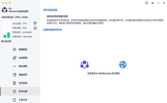 - 系统特征扫描:扫描系统内潜在安全风险,排查恶意软件、病毒、可疑程序,守护系统安全稳定。