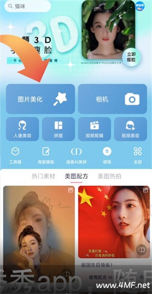 1、打开美图秀秀app,随后点击图片美化;