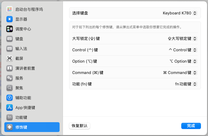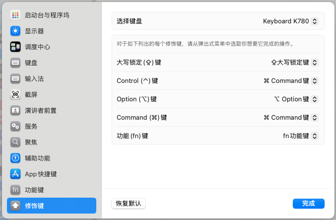 此时界面中,修改Control键功能为Command键,如下图示: