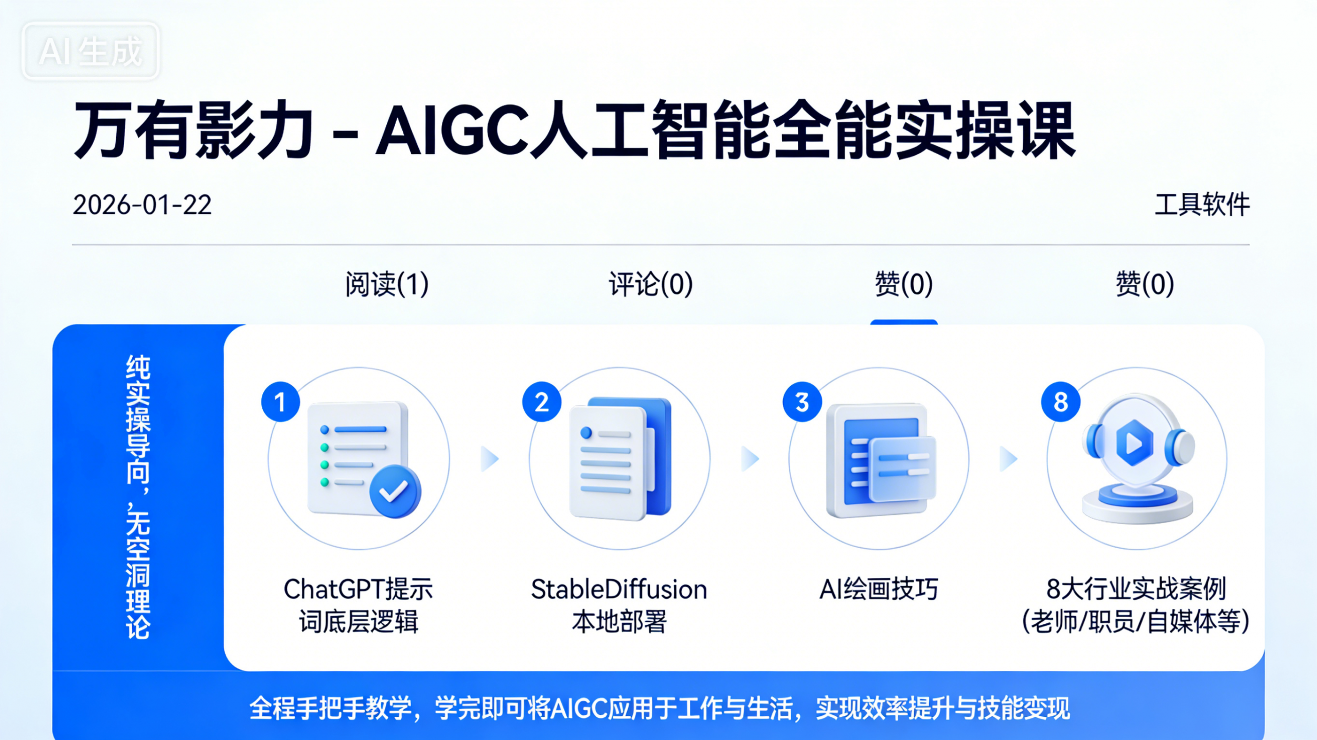 适配人群:自媒体从业者、设计师、电商运营、职场职员、学生、实体店经营者,以及想通过 AIGC 提升效率、拓展技能的零基础学习者