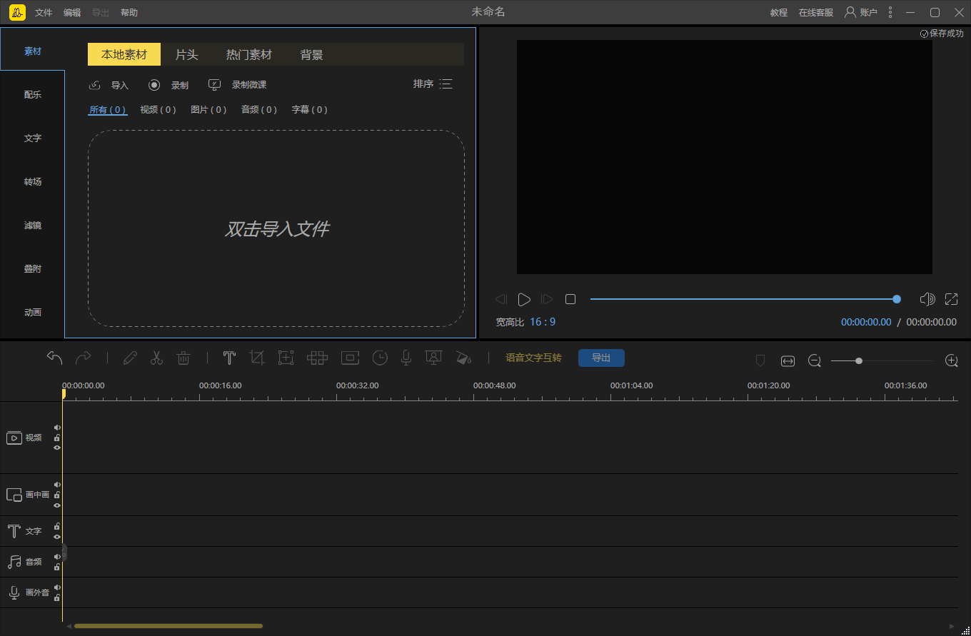 - 海量剪辑素材库:内置上百种转场效果、滤镜、叠附、动画素材,满足多样化视频创作需求;