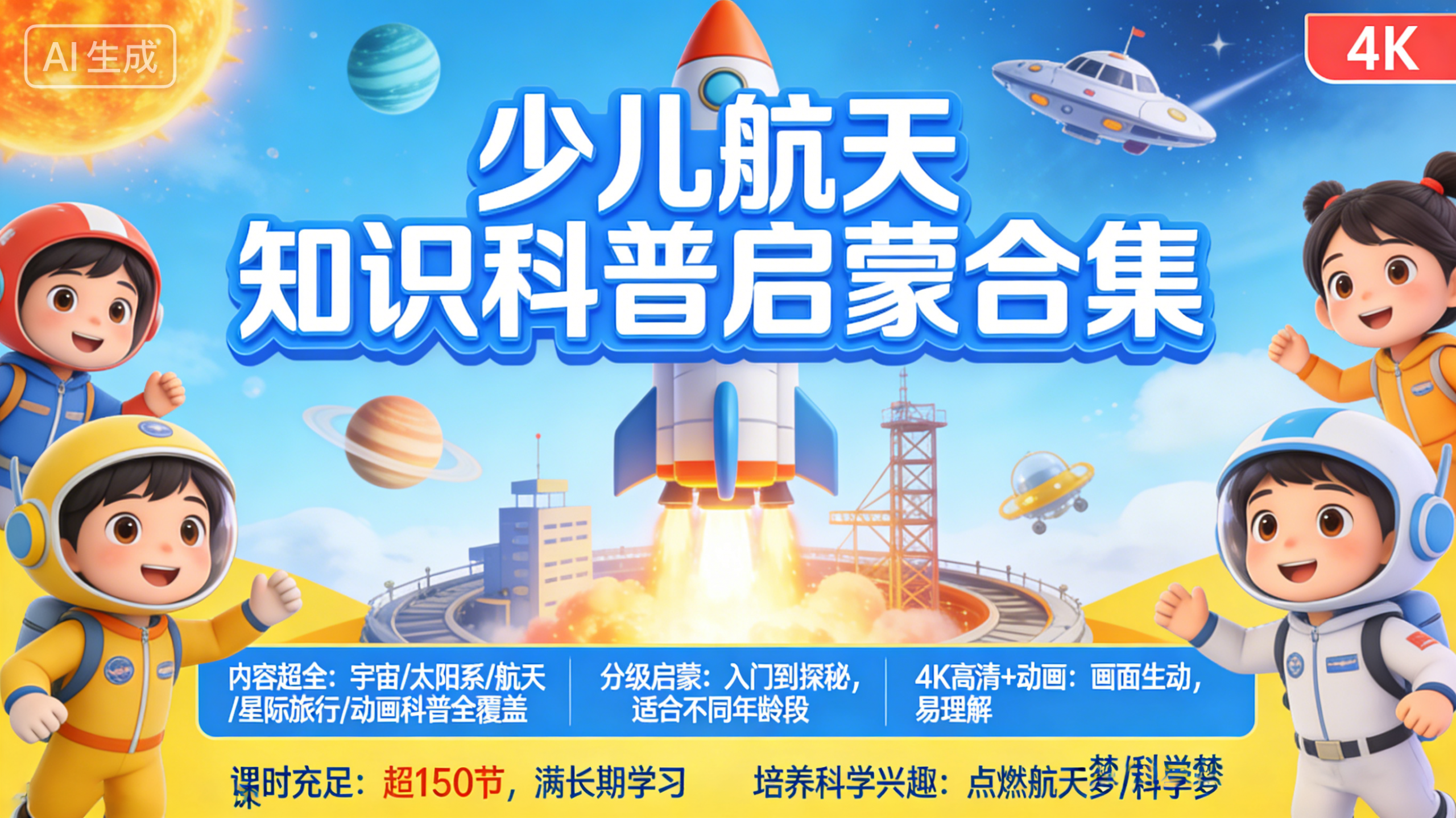 课程定位:专为孩子打造的航天 + 宇宙启蒙,覆盖太空、太阳系、飞船、火箭、星际探索等趣味知识。