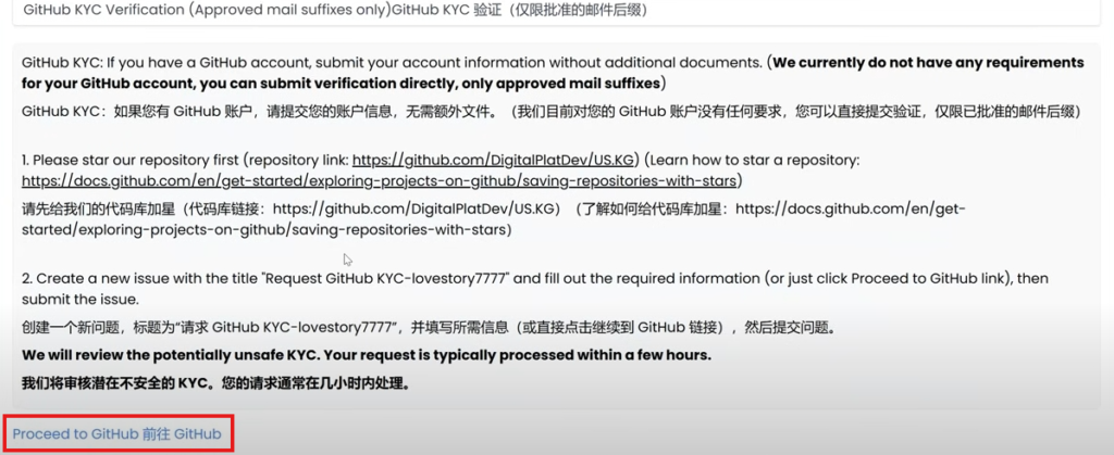 之前上传KYC文件激活的方式已经失效,现在需要通过Github进行注册。